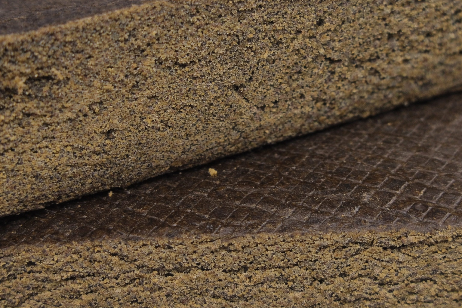 L’extraction est ensuite affinée sur un tamis de 90 microns avec une rétention sur un 45 micron, sélectionnant uniquement les particules les plus fines et les plus riches. La résine est ensuite soumise à un curing de 8 semaines sous vide, une étape essentielle pour stabiliser la matière, améliorer la texture et révéler toute la complexité aromatique.